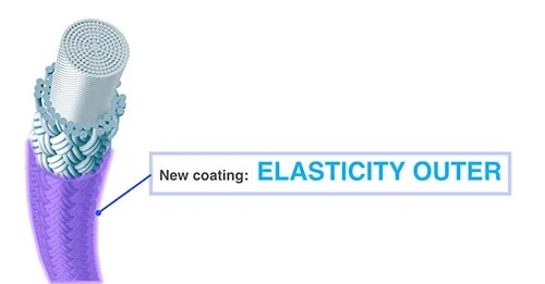 Elasticity Outer: Lớp đàn hồi Lớp bên ngoài đàn hồi là lớp phủ có tính linh hoạt nâng cao đạt được bằng cách áp dụng công nghệ NANOALLOY cho nylon. Kết quả là sự kết hợp của lực đẩy nhanh, độ bền và khả năng kiểm soát.