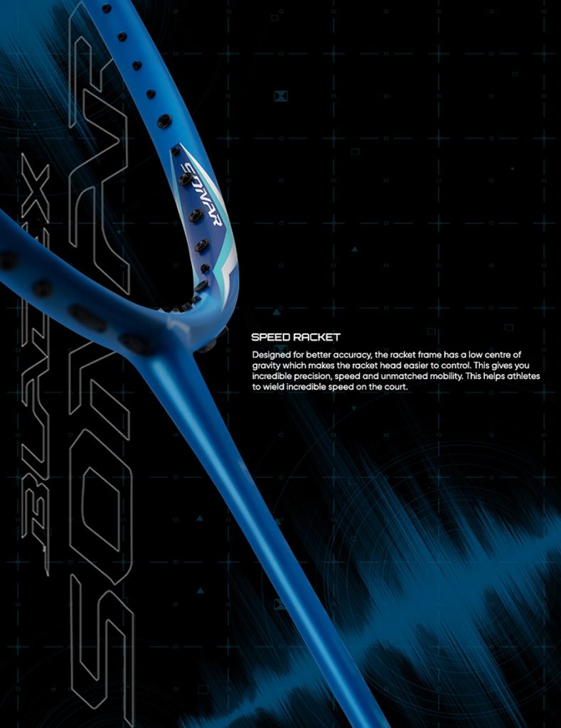 Vợt được thiết kế với cấu trúc khung nhẹ cùng với các công nghệ tiên tiến tạo điều kiện cho những cú xoay người nhanh để những cú đánh trở nên dễ dàng hơn. Bladex Sonar mang đến sự kết hợp vô song giữa tốc độ và độ chính xác, hoàn hảo cho những cú đánh chính xác và chuyển động nhanh.